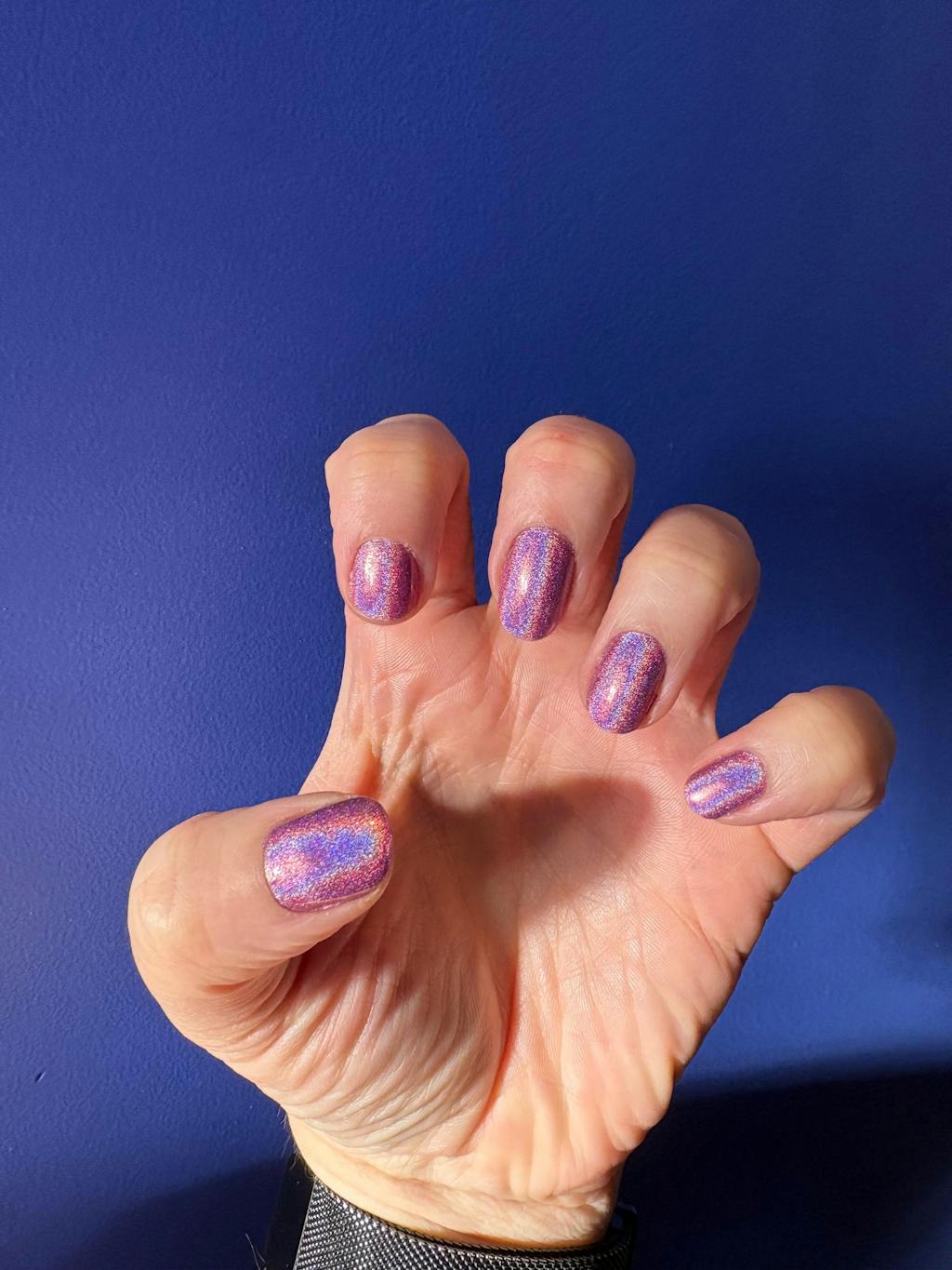 See the world through rose-coloured glasses with Pink Dawn, a light pink linear holographic polish. The whole world is brighter with holo! 2-3 coats for full opacity.
