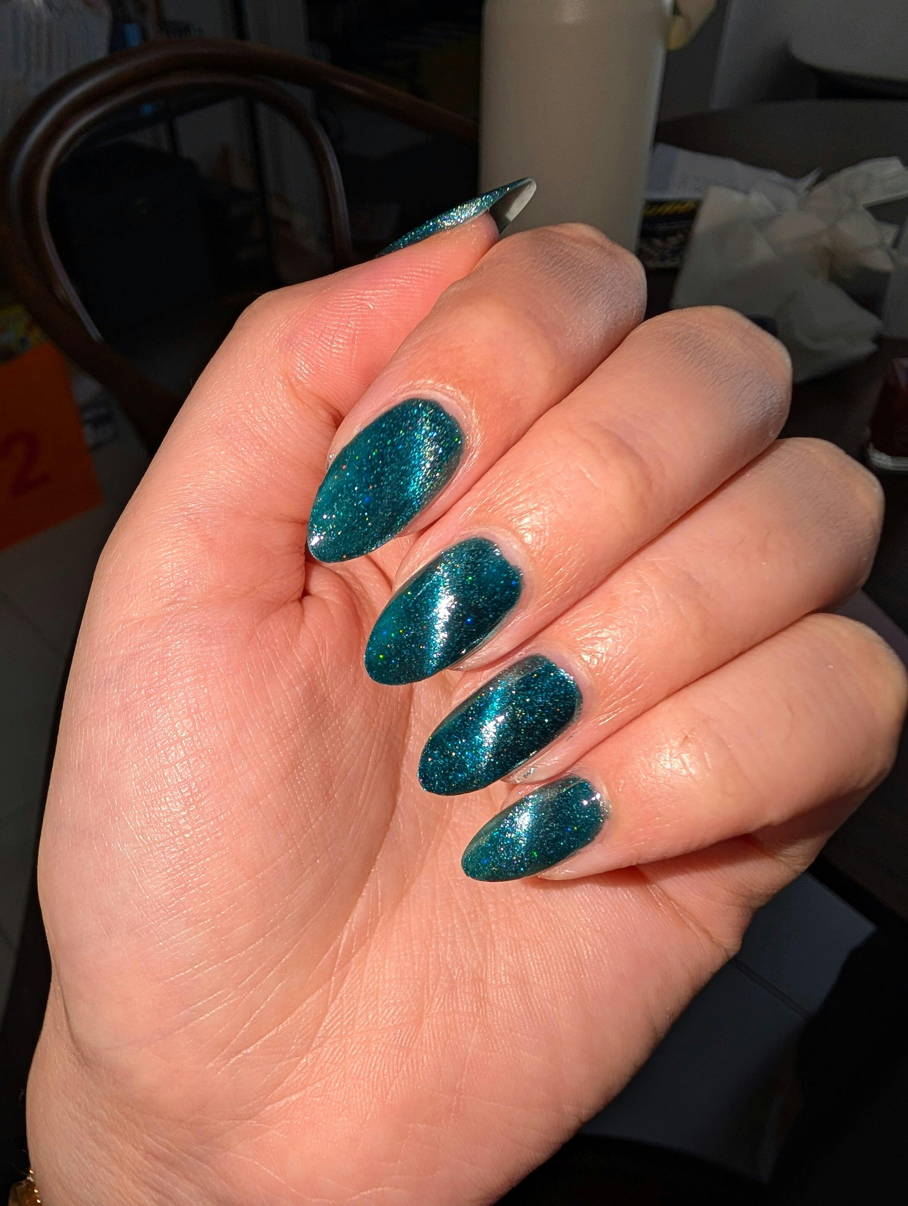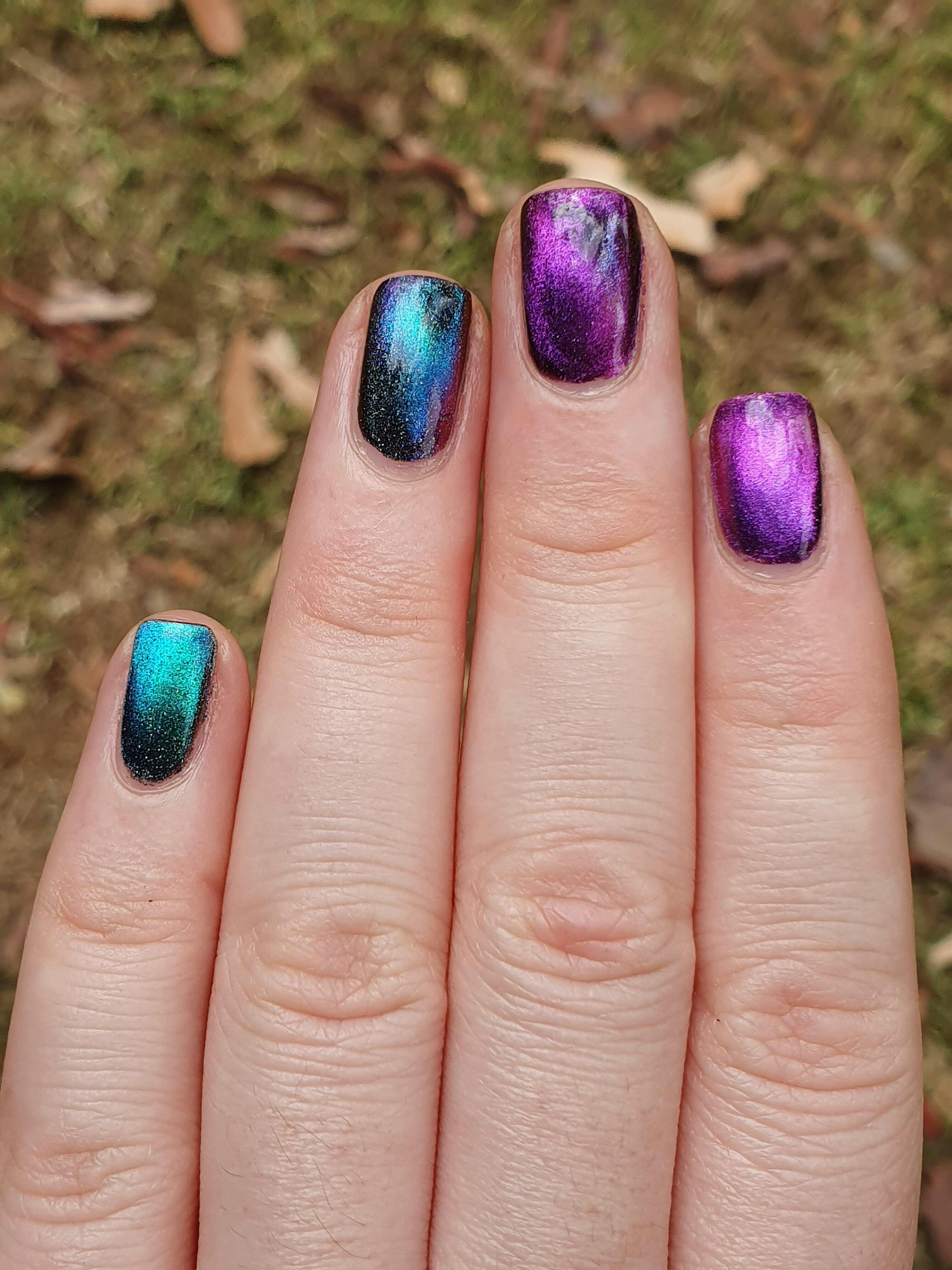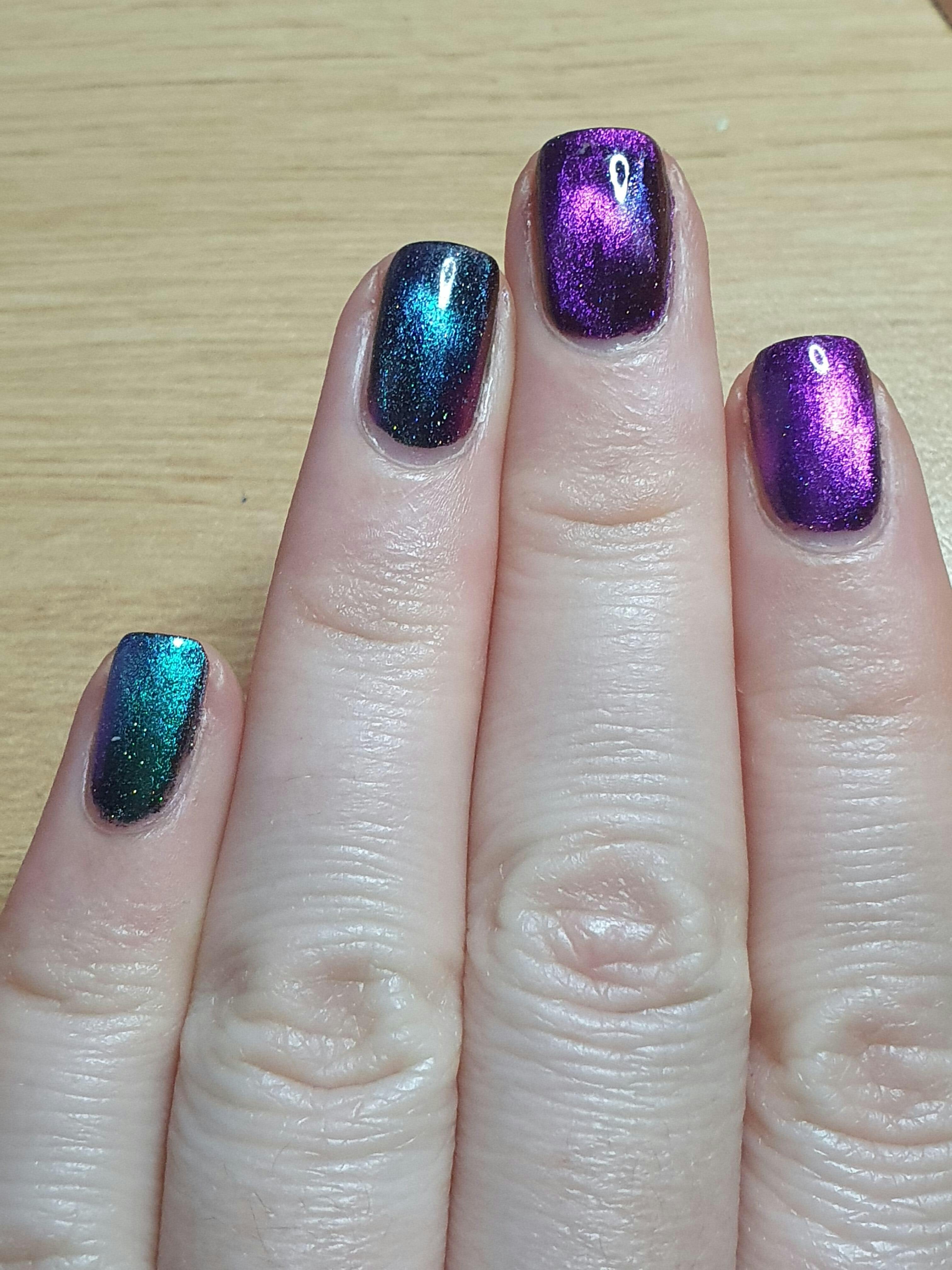 This is my very first magnetic polish and I honestly don't know if I'll be able to go back to regular polish after this. I followed the guide (the tip about putting the wand between two books is genius) and it couldn't have been easier. I can't stop looking at my nails. I love the dimensionality it gives my nails and how different the glitter looks depending on the lighting.
