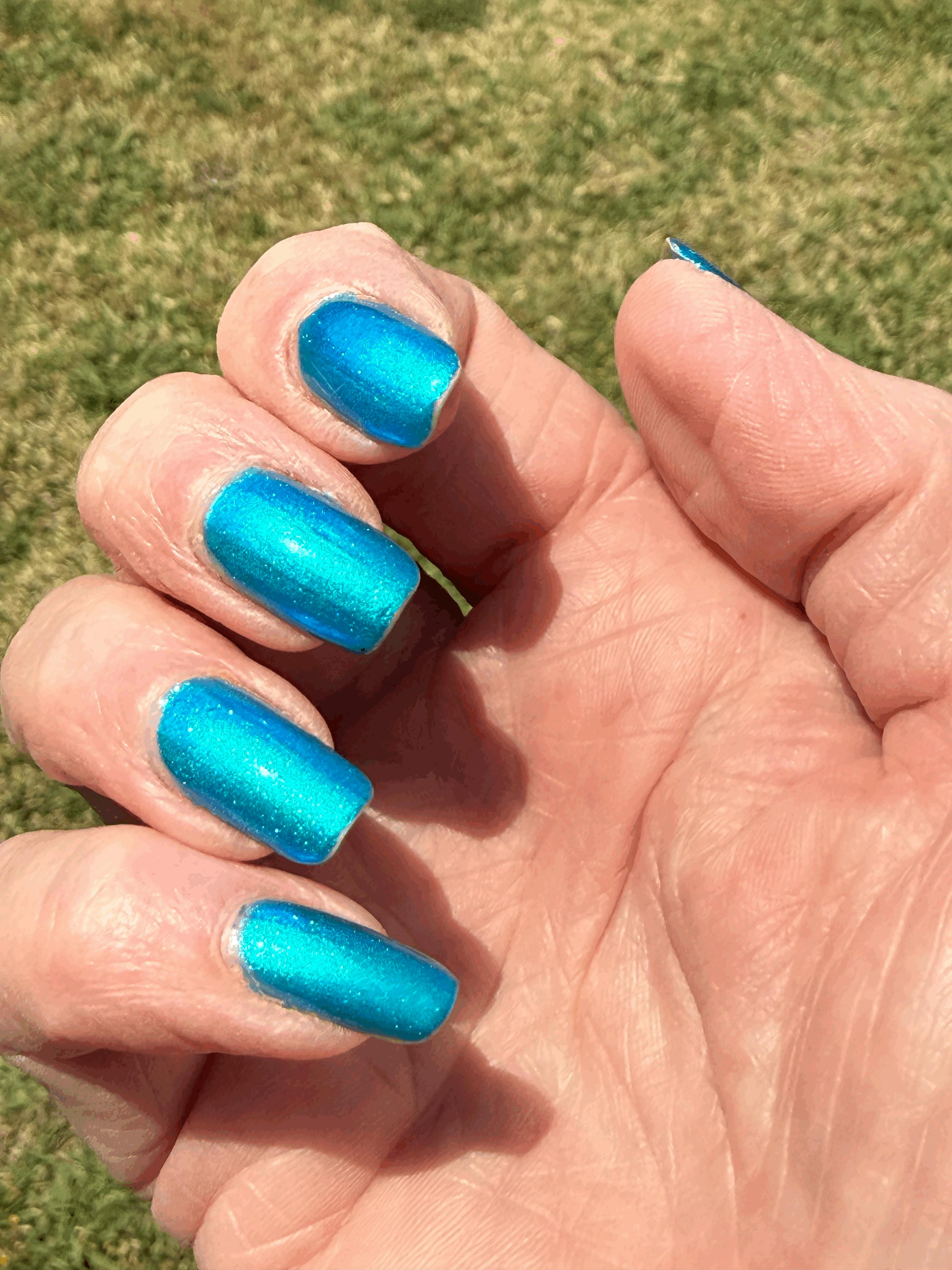 It’s such a pretty shade and goes on incredibly smoothly! The first coat is already vivid as well. The shimmer is both noticeable in and out of the sun