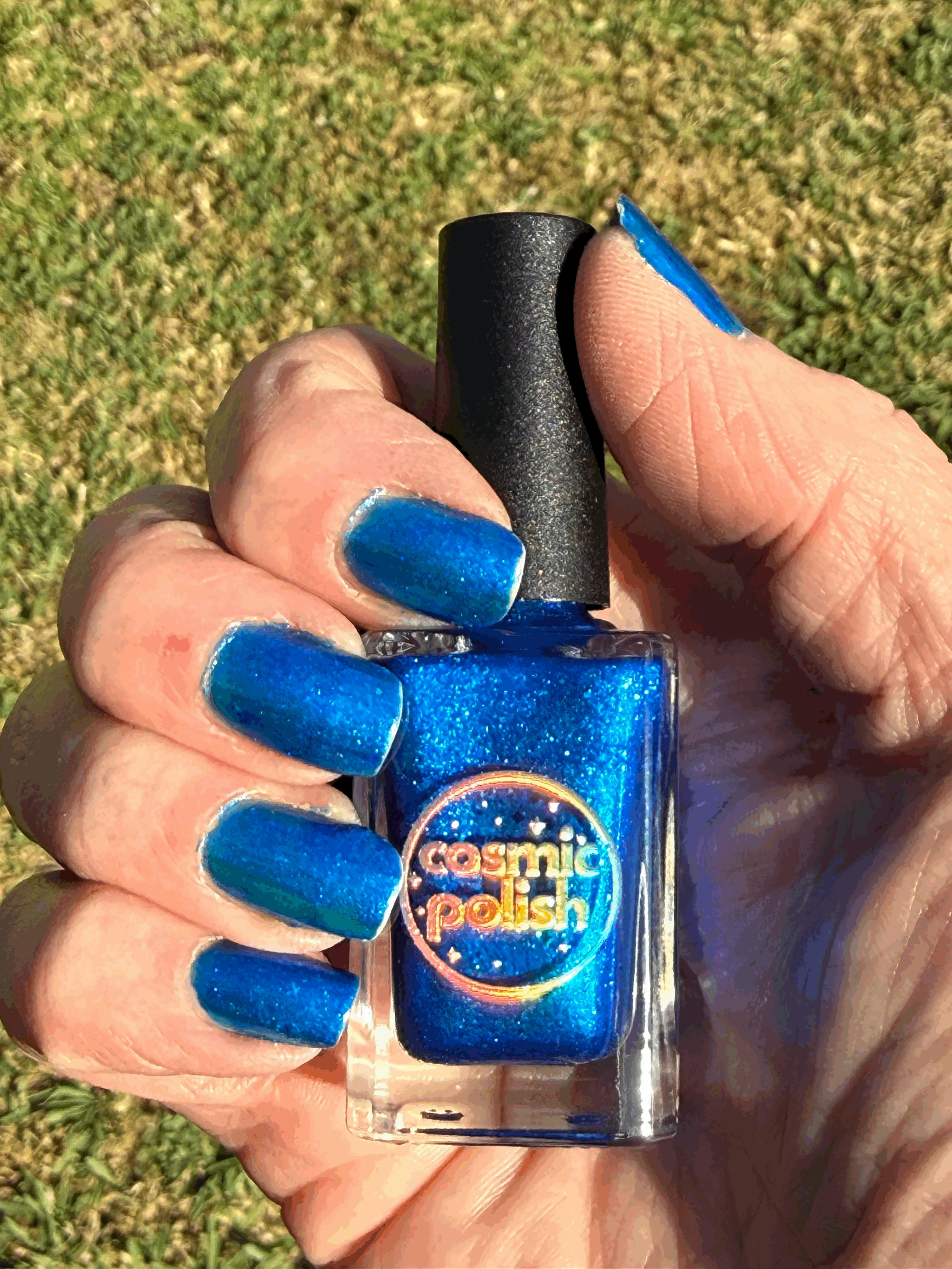 I totally agree with all of the other reviews. This is insane, so bright and glowy for a cobalt blue. It is rich and vibrant and looks absolutely stunning. Thank you so much for this creation Cosmic Polish! Love it! 💙
