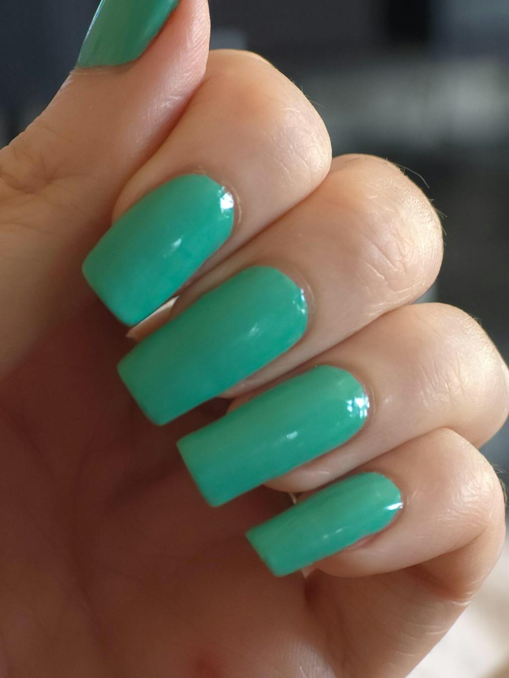 This is a really pretty minty colour. It applies smoothly and I love the transparent jelly finish