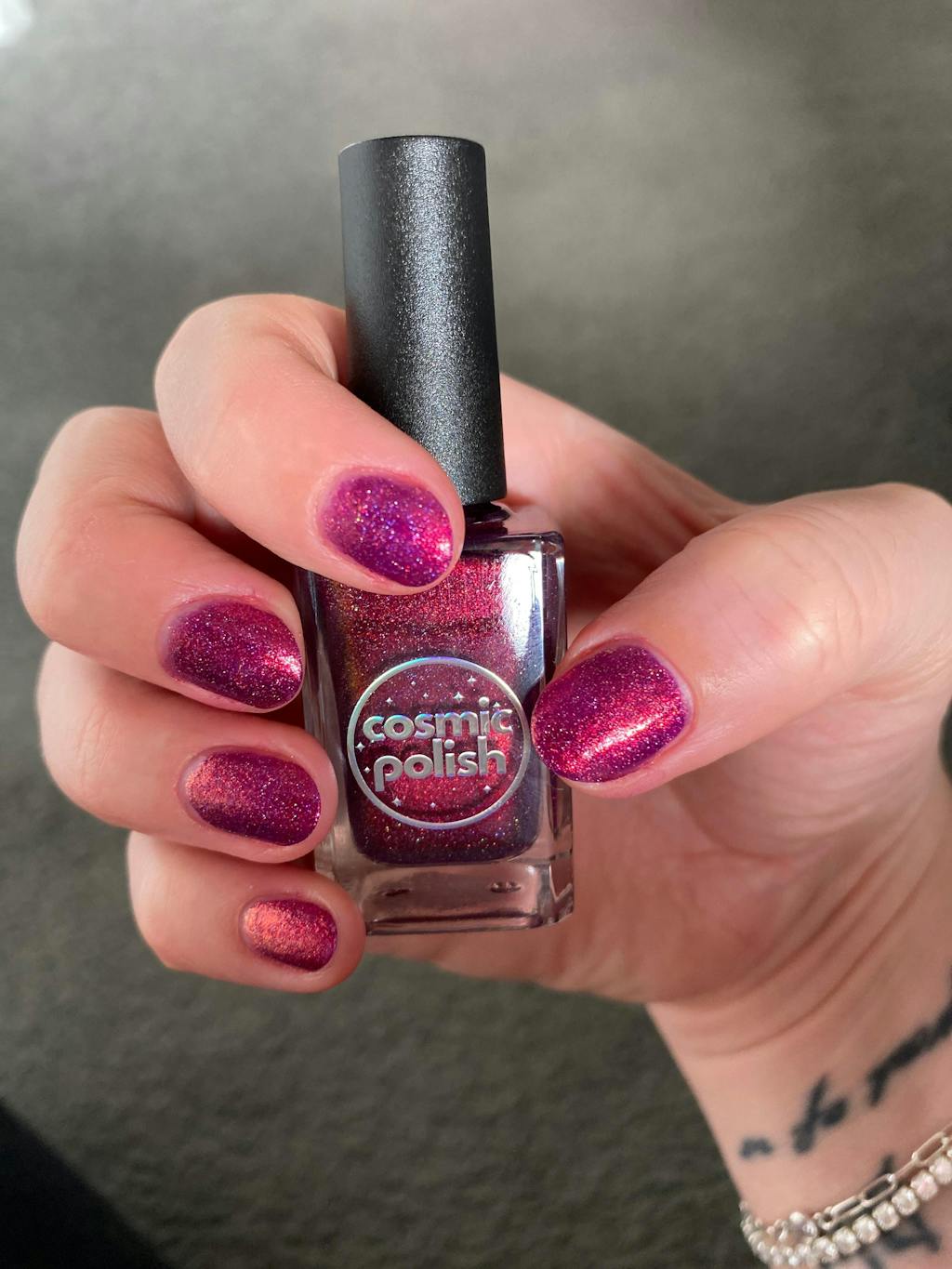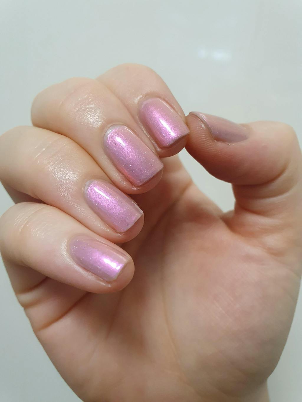 Love this colour! It shifts beautifully! Pink is my favourite colour. I wasnt sure if id like the other colours but the whole lot together is so mesmerising! Perfect in two coats. Needs a top coat as the finish is a little gritty