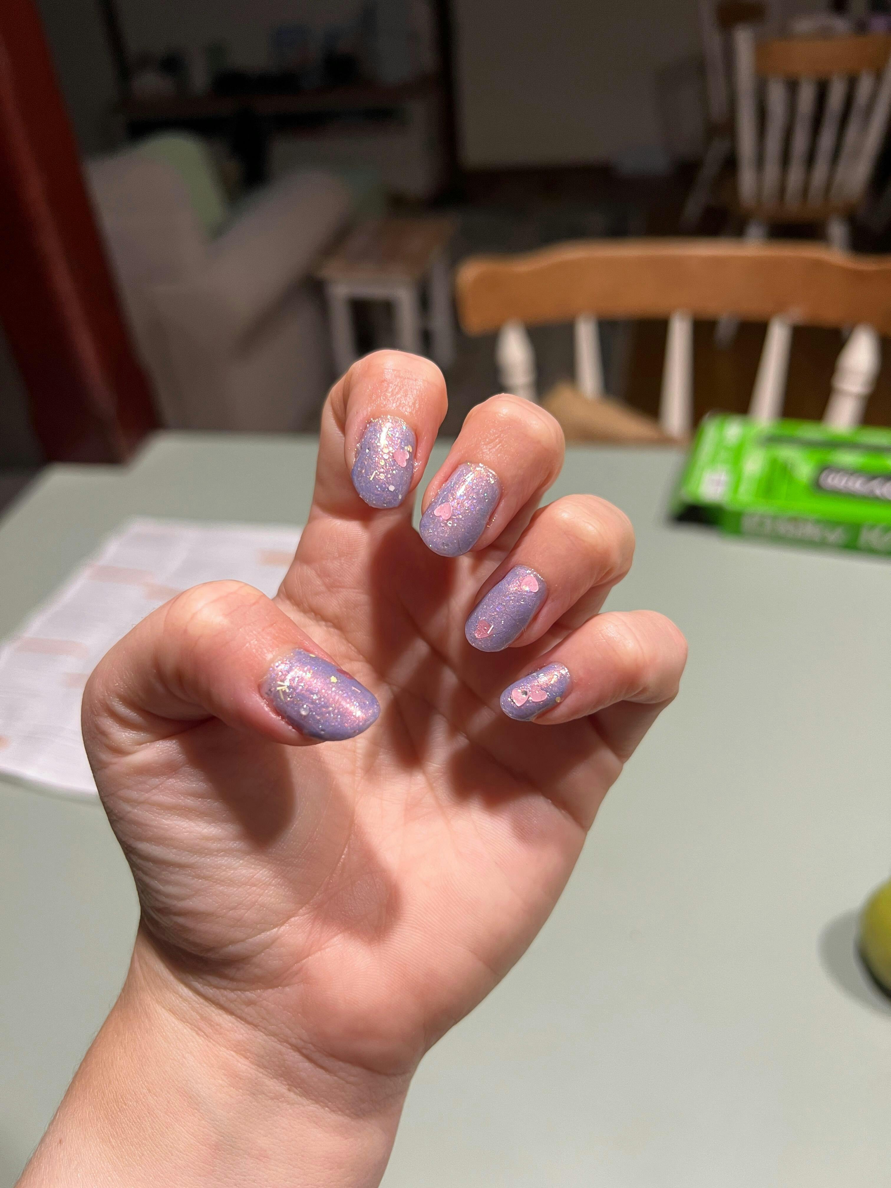 This light purple is so soft and pretty and the shimmer is such a great contrast! It gives me a elegant and dainty vibe.