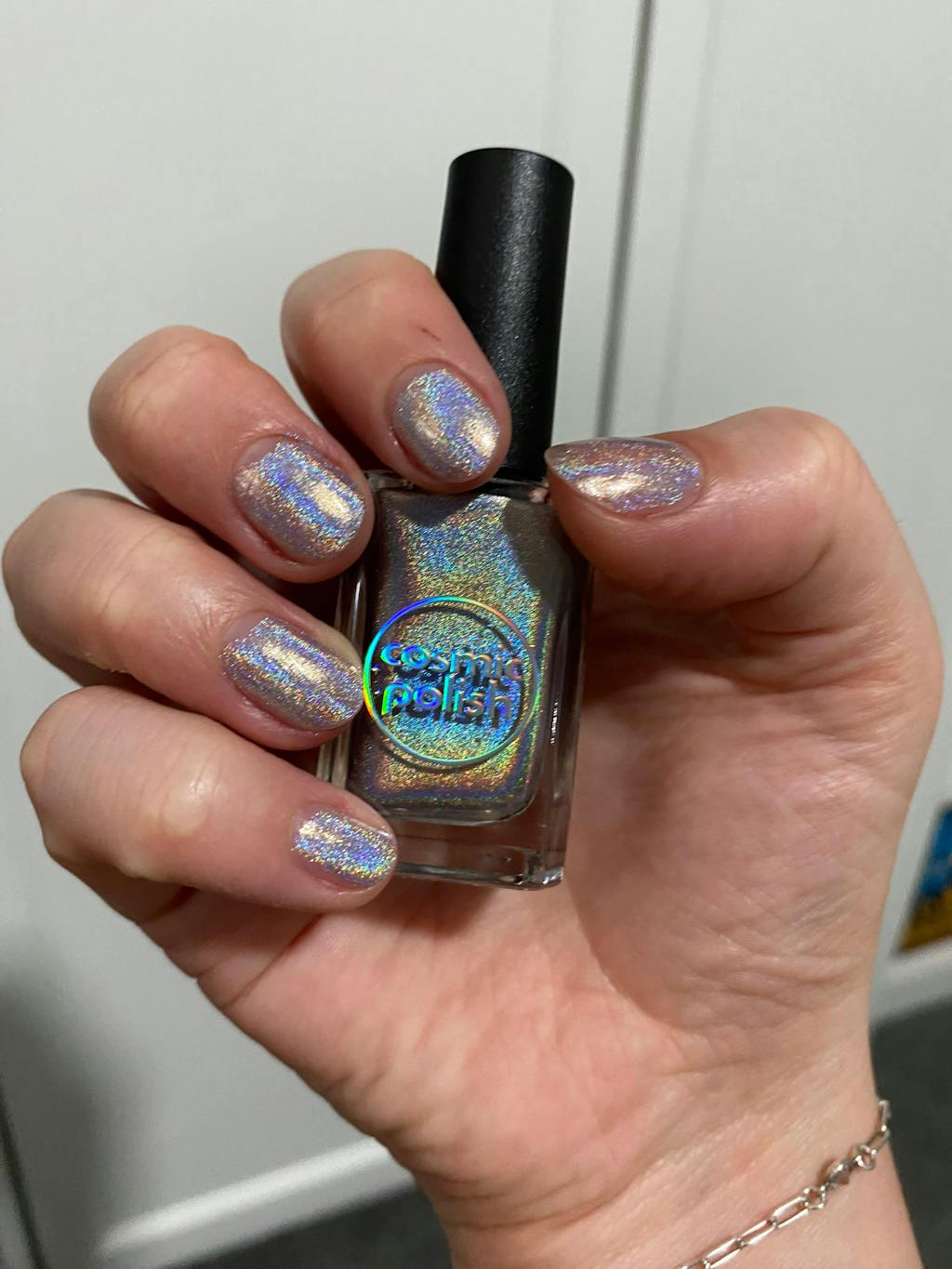 Float into pure holo wonder with Holo Flare, a silver linear holographic polish. There’s no need for a flashlight - this polish will light up any room.  2-3 coats for full opacity.