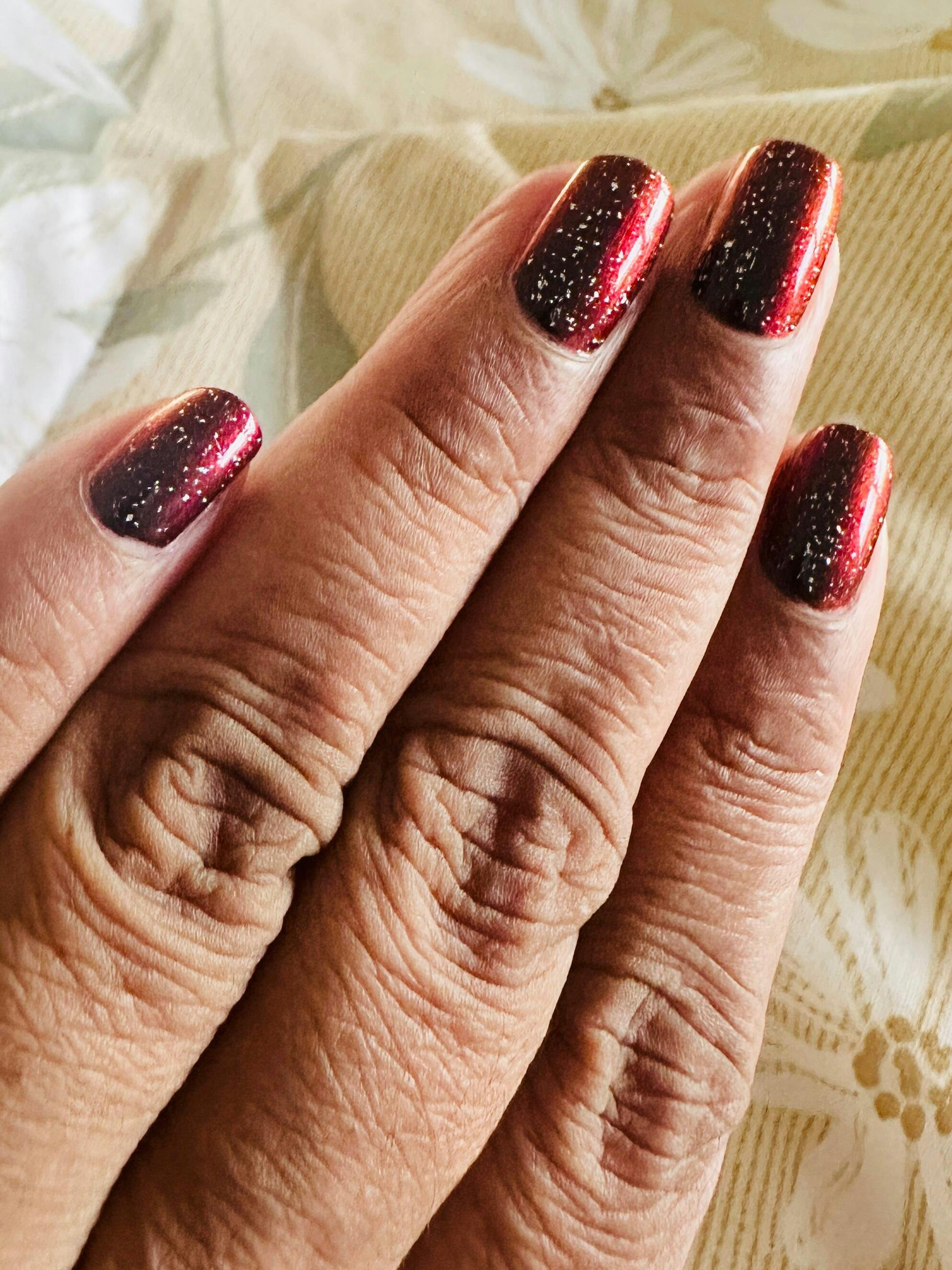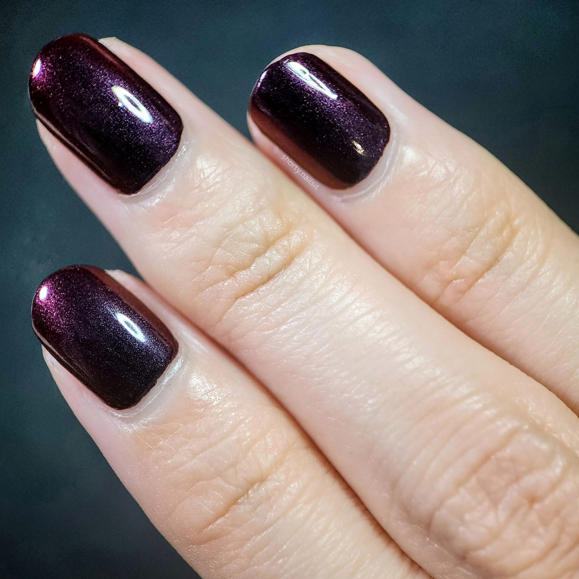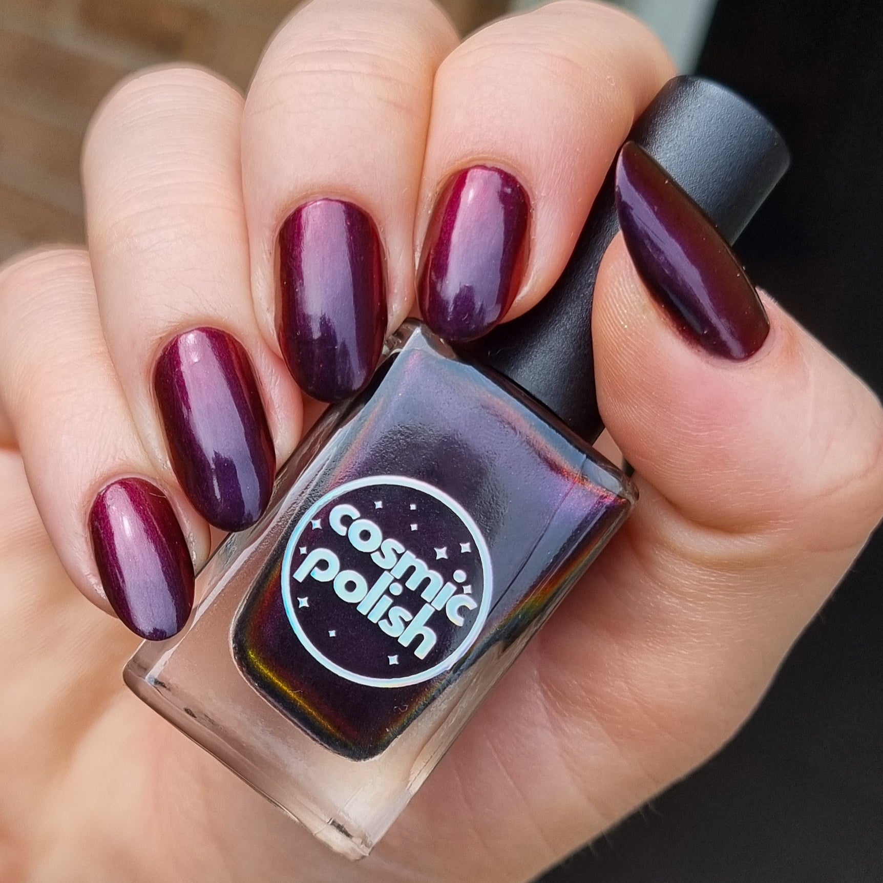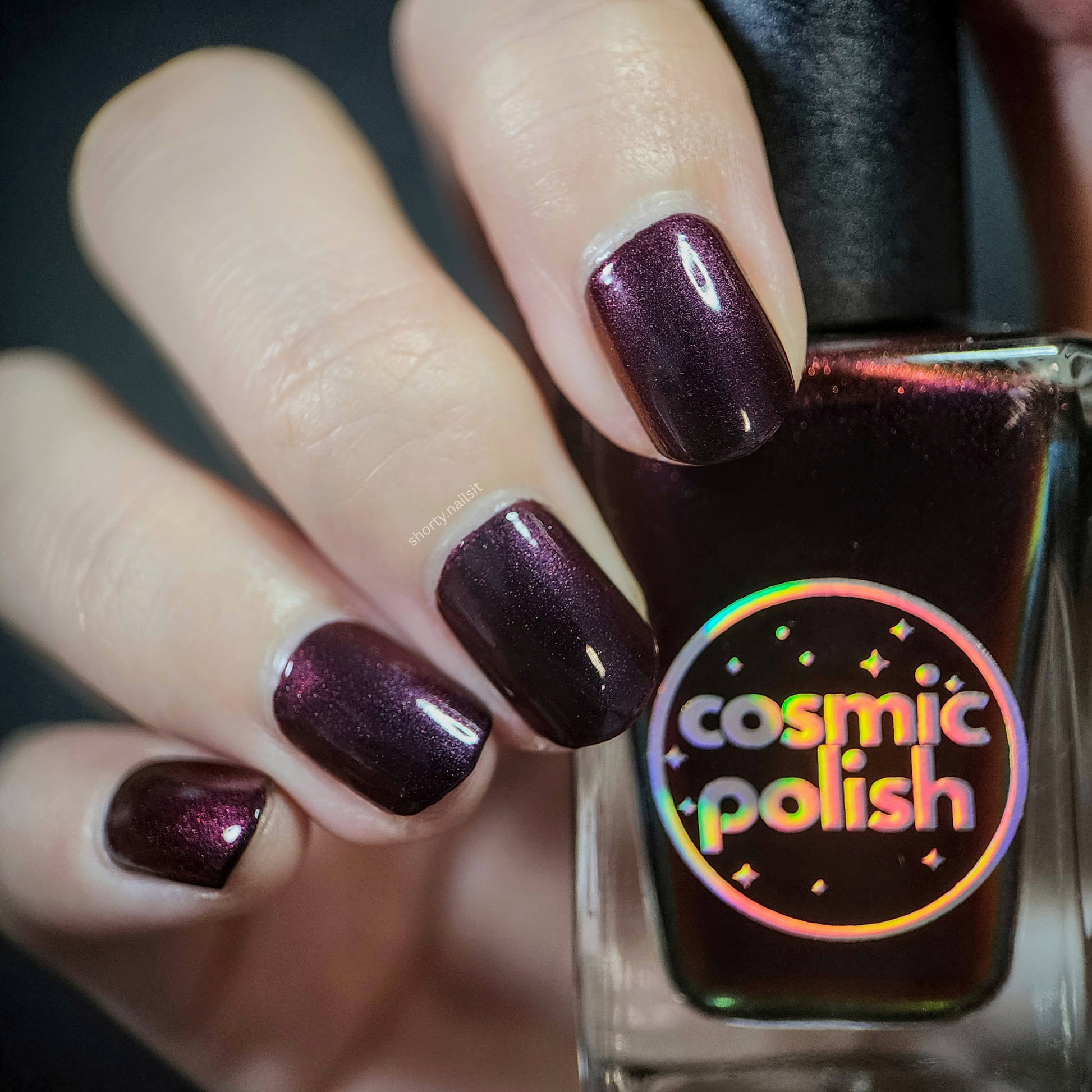 Red Moon Rising is a vampy dark burgundy to red to burnt orange multichrome that looks almost black in some angles, and will have you wanting to indulge in your dark side.
