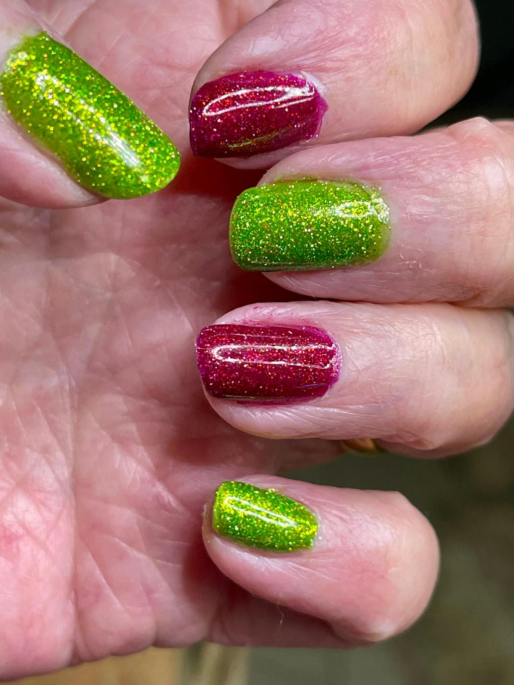 Step into the spotlight with Scarlet Showgirl, bold and unapologetically dazzling. A rich scarlet red packed with pink reflective and shimmer glitter, this showstopper commands attention from every angle.