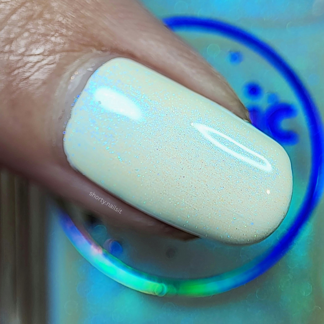 There’s something in the distance, just out of sight - Through the Mist is a sheer cyan-to-blue shimmer that feels airy and ethereal on its own and over lighter shades, but transforms into a bold, glowing topper over the dark. Soft and dreamy or bright and striking - it’s all in how you wear it.